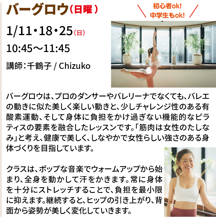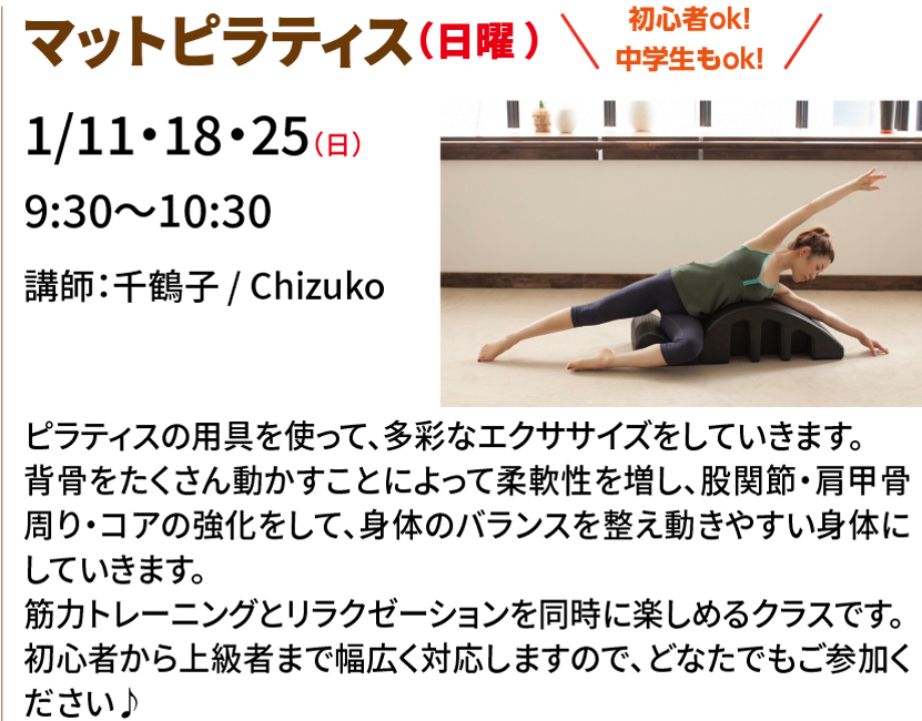 2025.12.31 ニュース マット ピラティス&バーグロウ 入会金半額キャンペーン! 大人の方を対象としたマットピラティス、バーグロウを開講。 レッスン動画はこちら レッスン動画はこちら ピラティス&バーグロウの申込み 一覧に戻る