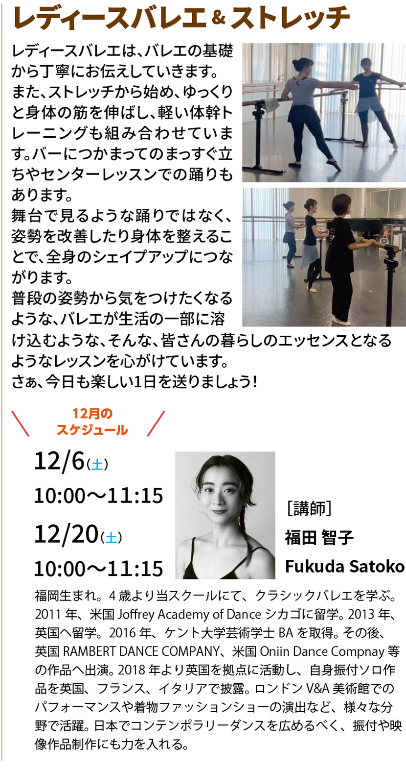 大人の方を対象としたレディースバレエ&ストレッチを開講。