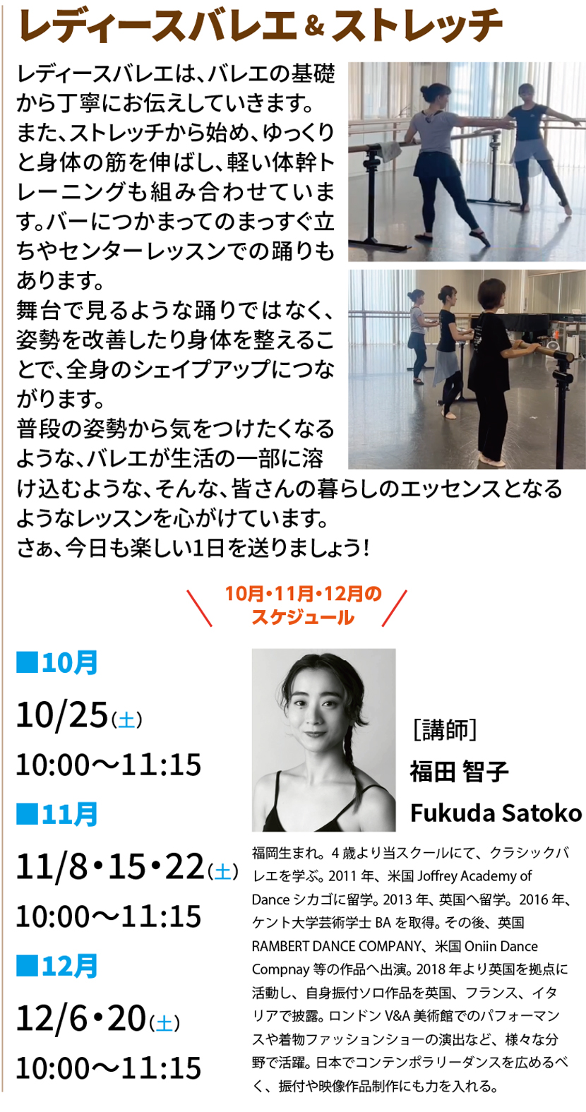 大人の方を対象としたレディースバレエ&ストレッチを開講。