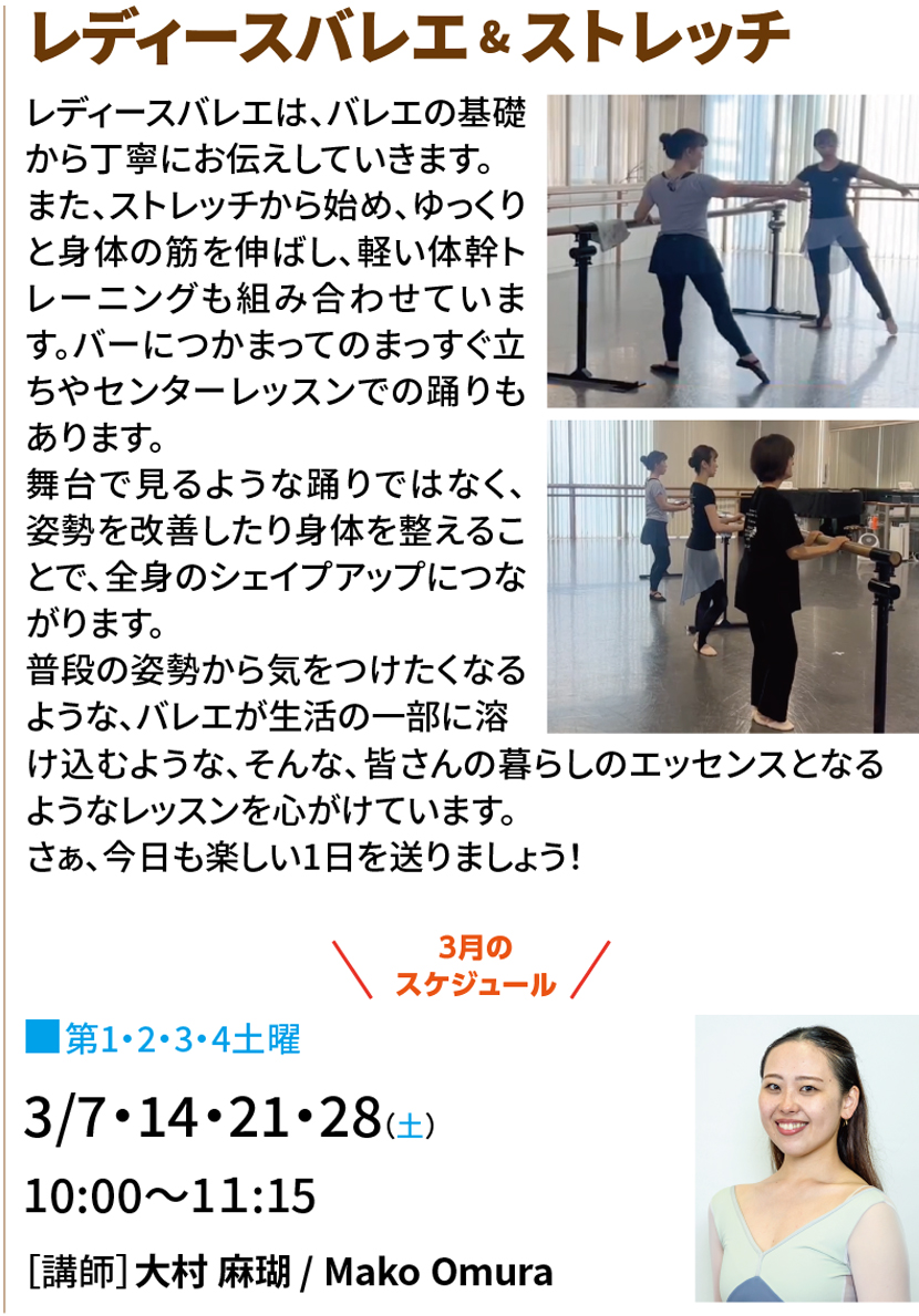 2026.02.26 ニュース レディースバレエ&ストレッチ 入会金半額キャンペーン! 大人の方を対象としたレディースバレエ&ストレッチを開講。 レッスン動画はこちら レディースバレエの申込み 一覧に戻る
